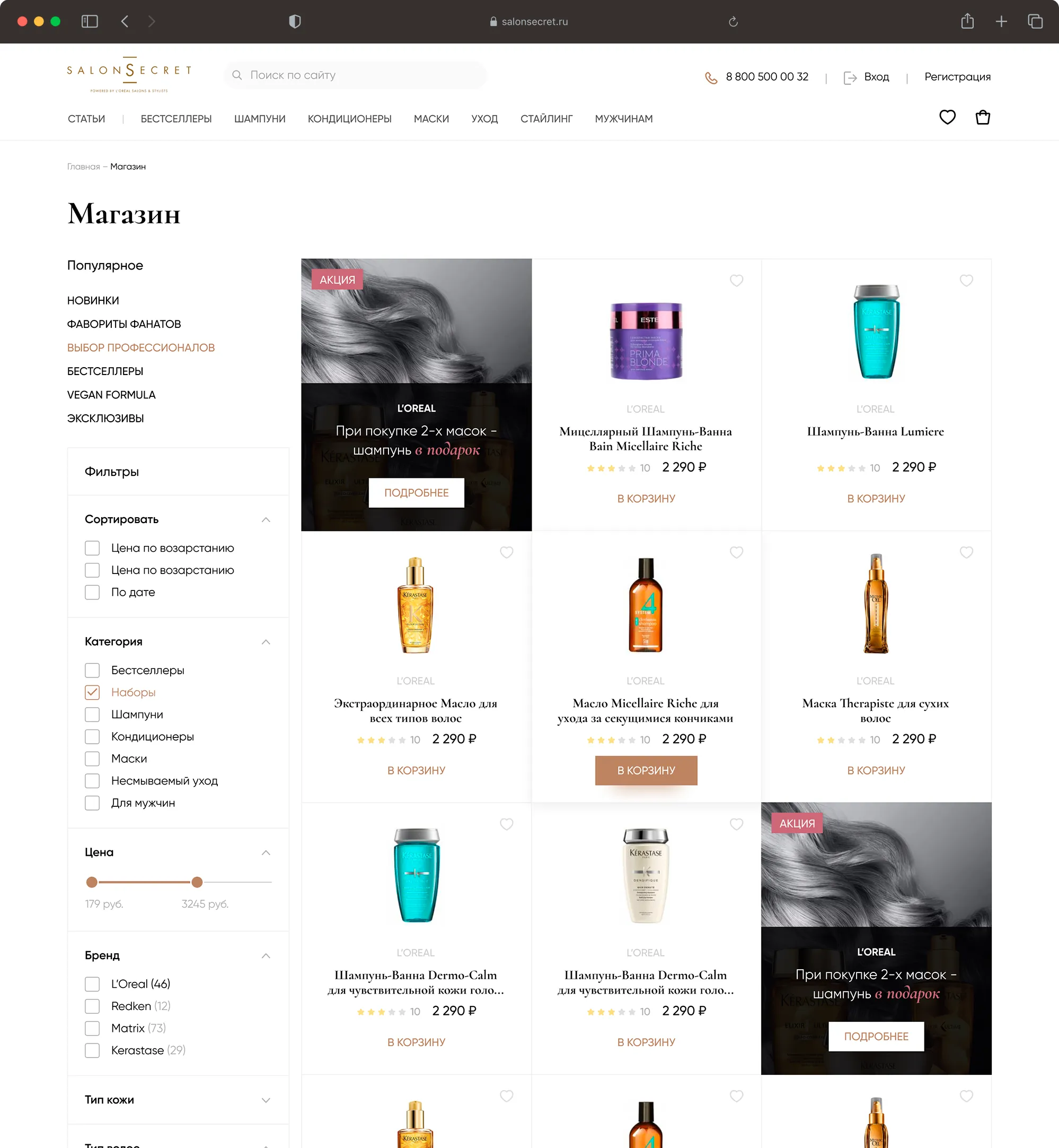 Компания владеет 497 патентами, управляет 38 заводами и 36 брендами косметики, духов и средств по уходу за кожей и волосами в потребительском сегменте, сегменте люкс, а также в сегментах профессиональной и лечебной косметики.